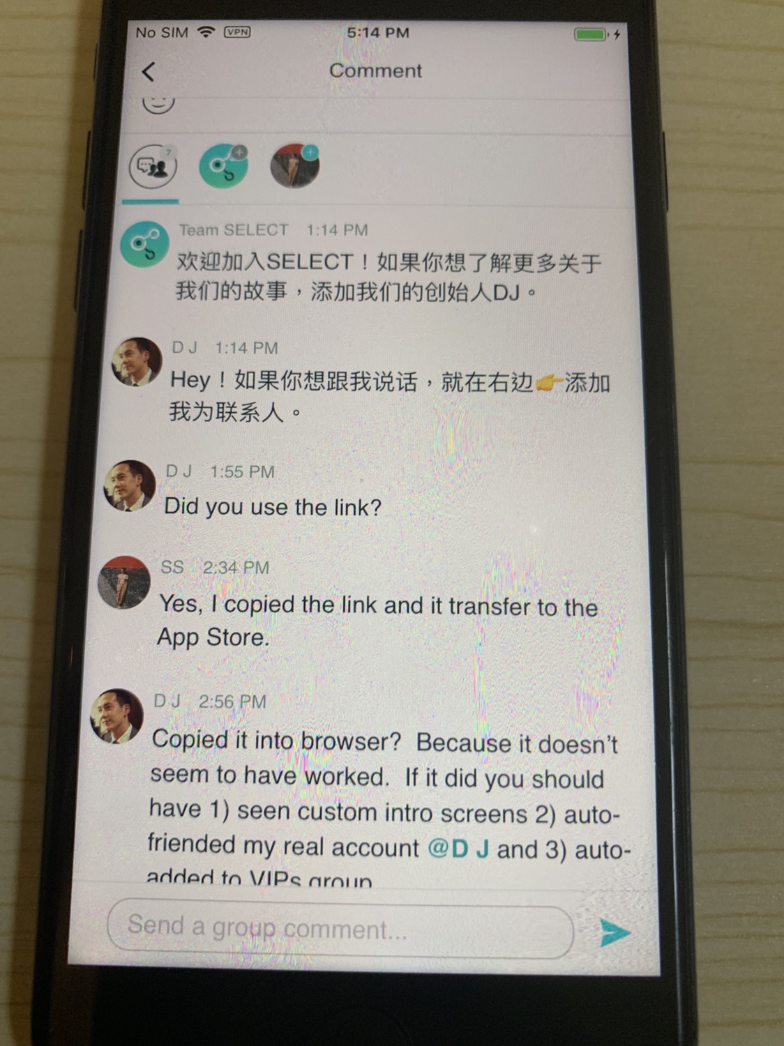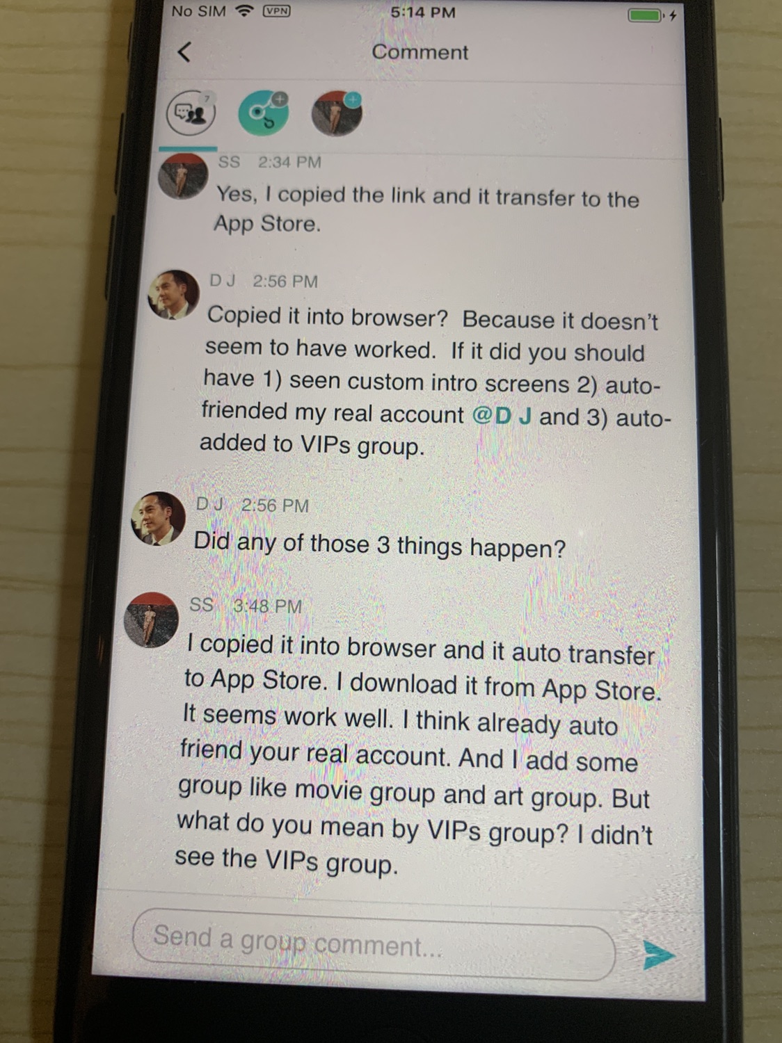 Comment here to discuss with all recipients or tap a user's profile image to discuss privately.