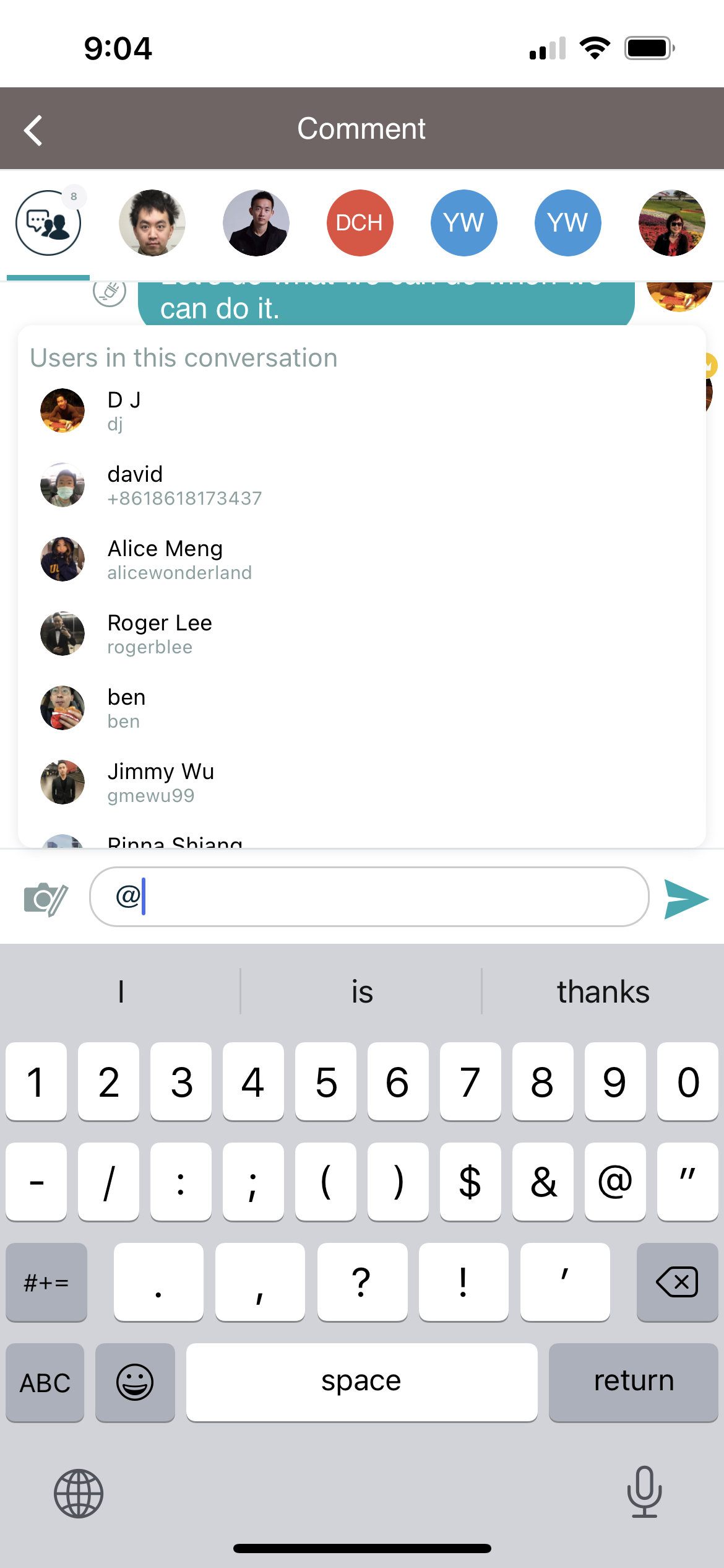 Comment here to discuss with all recipients or tap a user's profile image to discuss privately.