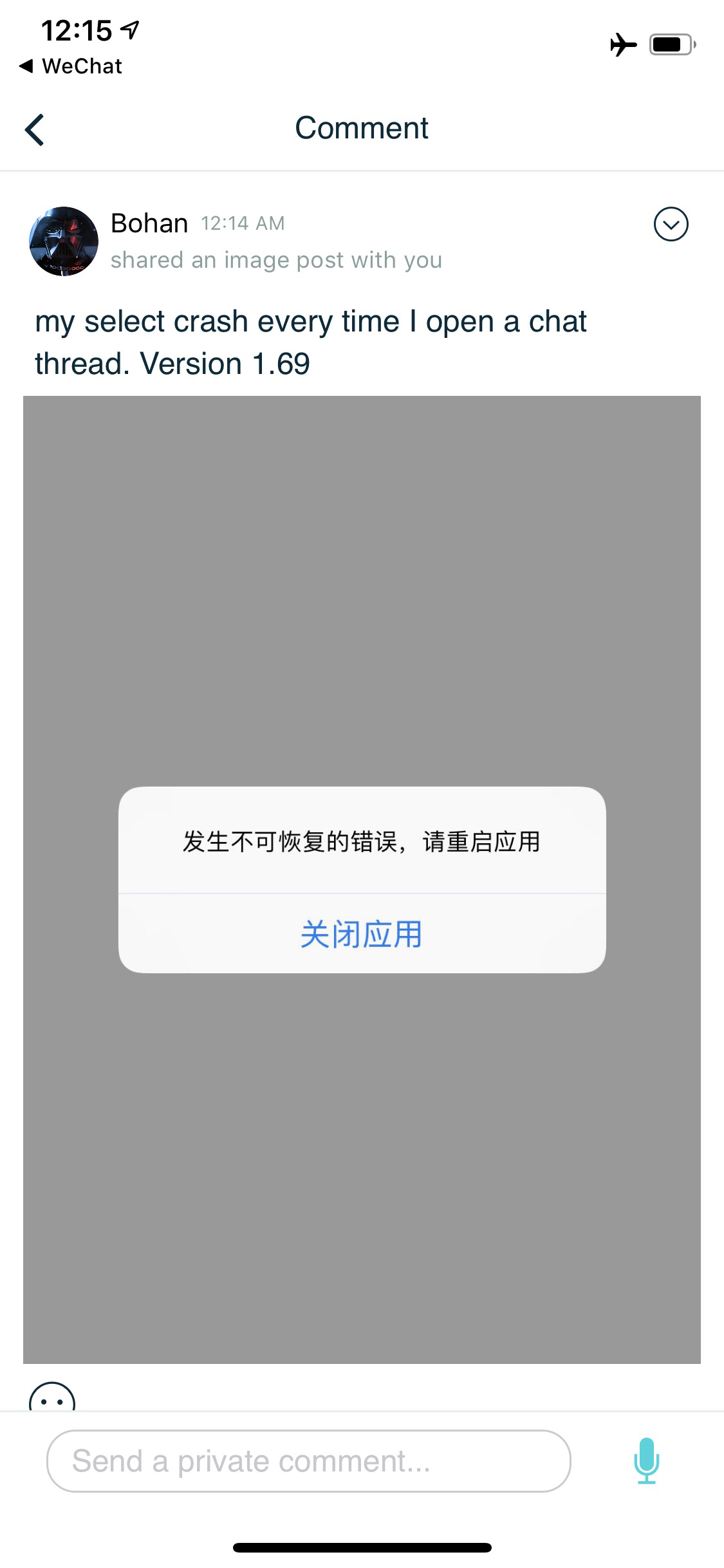 Comment here to discuss with all recipients or tap a user's profile image to discuss privately.