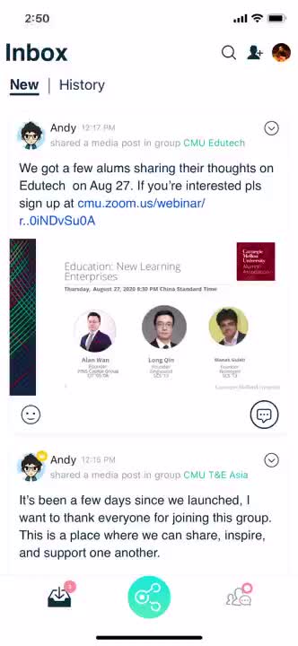 Comment here to discuss with all recipients or tap a user's profile image to discuss privately.