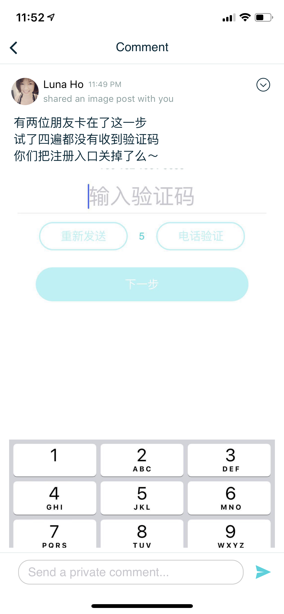 Comment here to discuss with all recipients or tap a user's profile image to discuss privately.