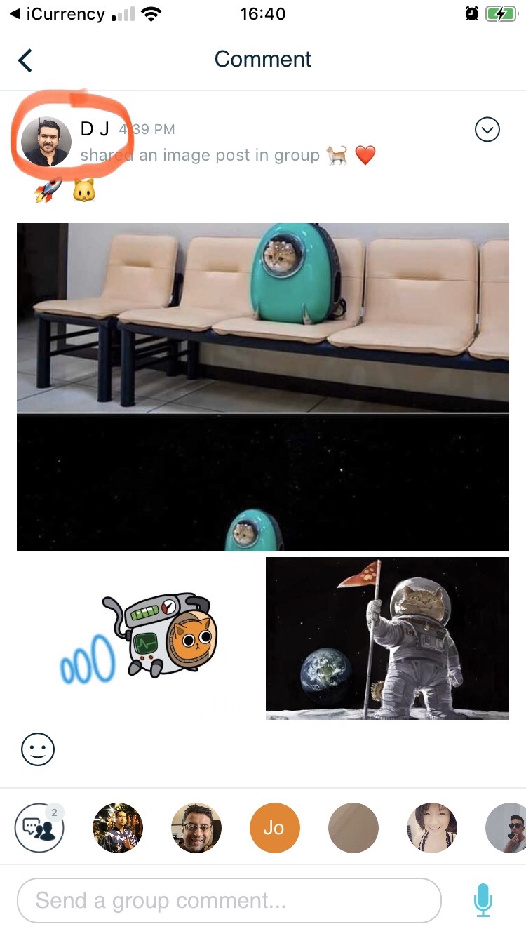 Comment here to discuss with all recipients or tap a user's profile image to discuss privately.