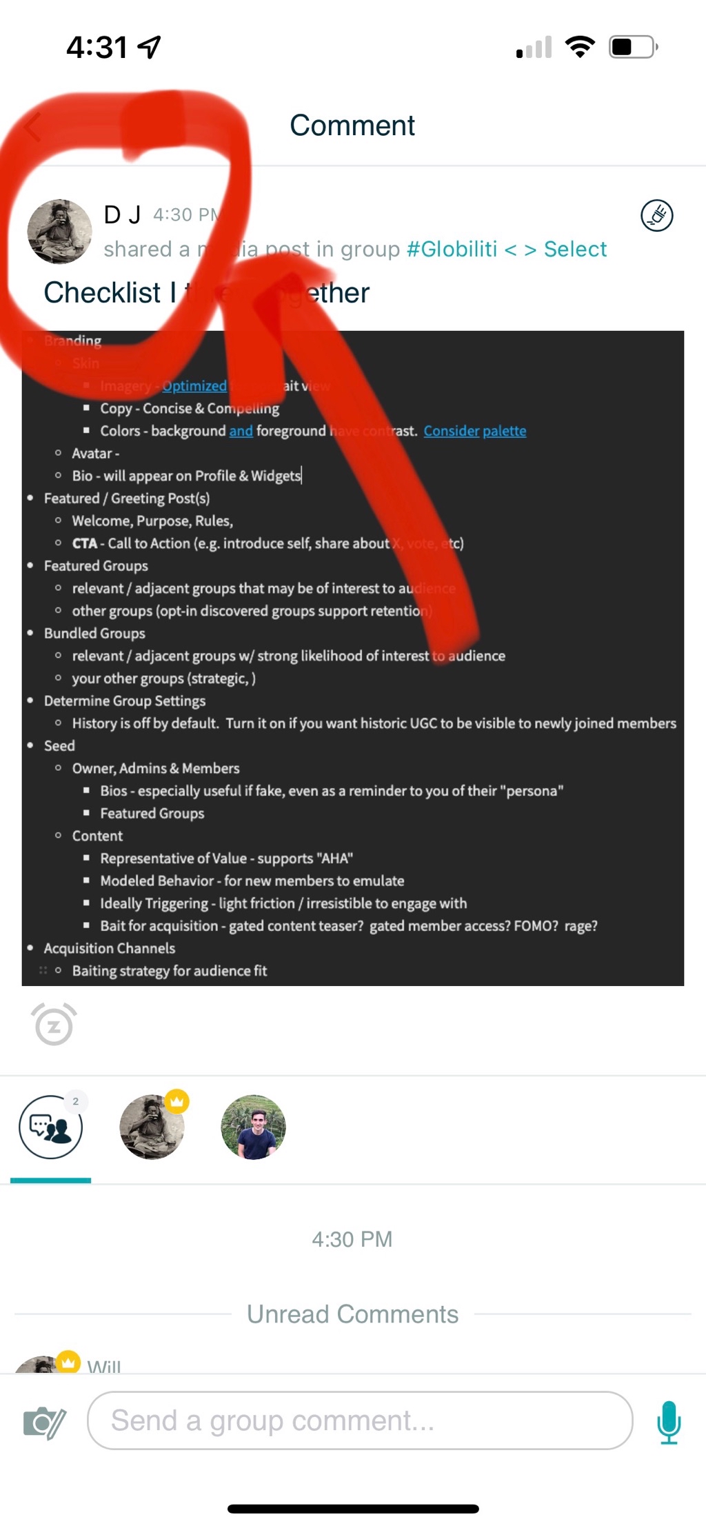 Comment here to discuss with all recipients or tap a user's profile image to discuss privately.