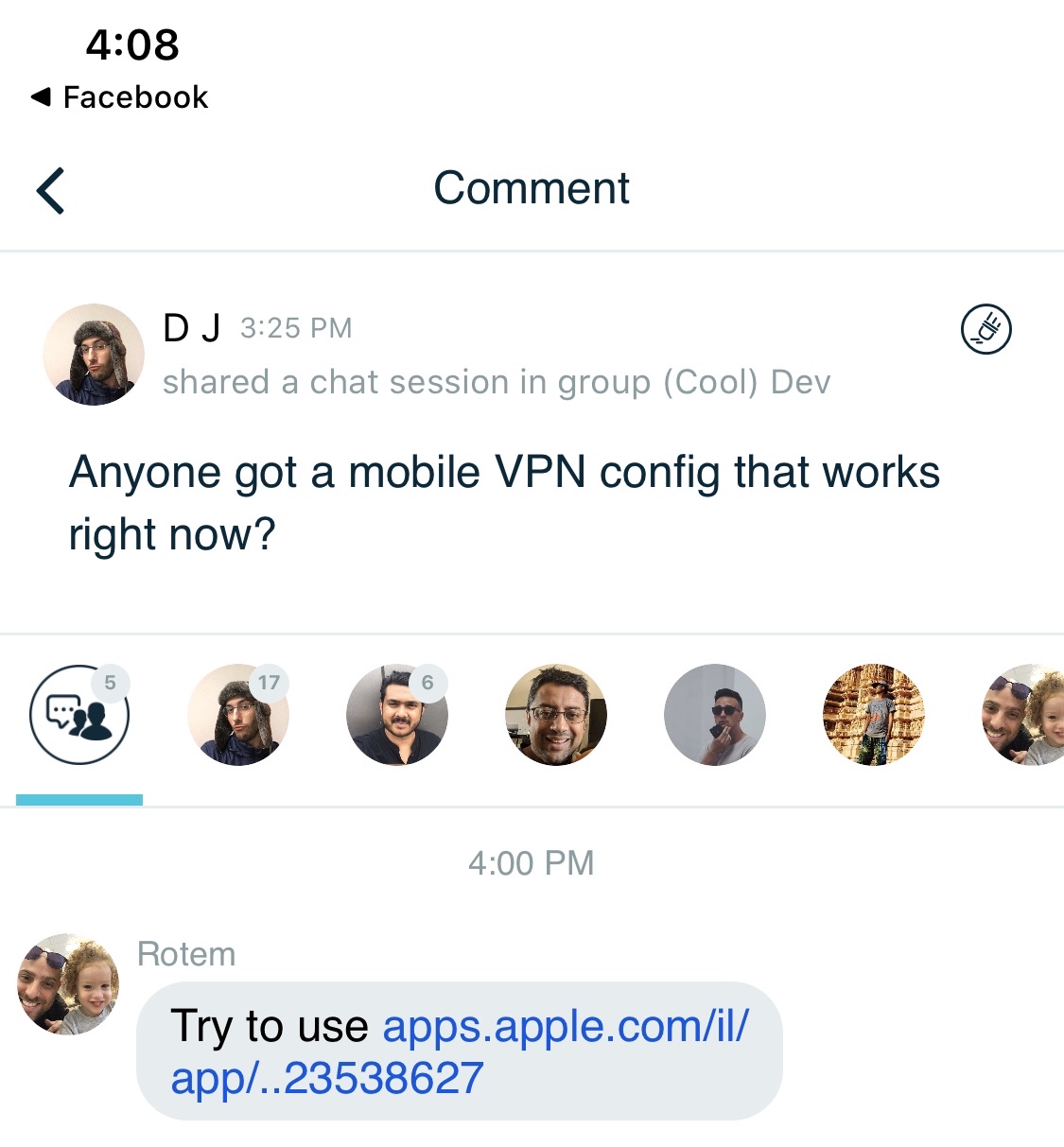 Comment here to discuss with all recipients or tap a user's profile image to discuss privately.