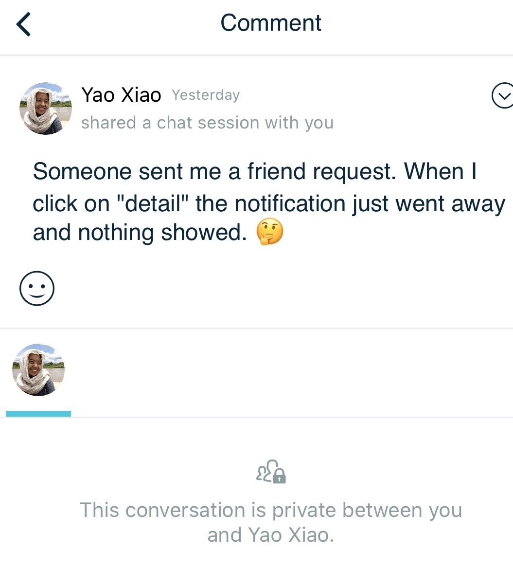 Comment here to discuss with all recipients or tap a user's profile image to discuss privately.