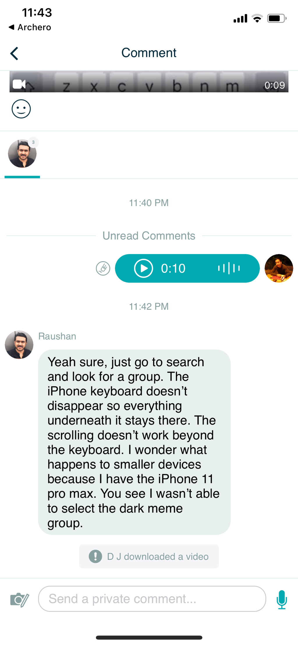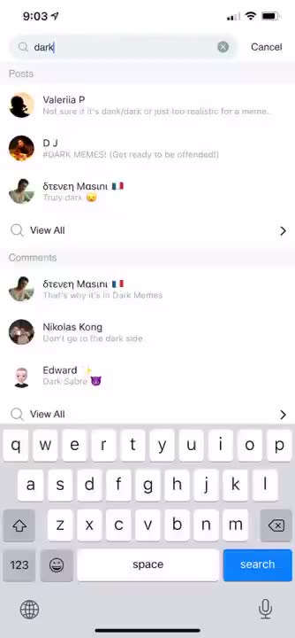 Yeah sure, just go to search and look for a group. The iPhone keyboard doesn’t disappear so everything underneath it stays there. The scrolling doesn’t work beyond the keyboard. I wonder what happens to smaller devices because I have the iPhone 11 pro max. You see I wasn’t able to select the dark meme group.