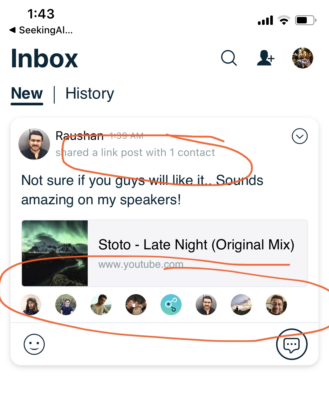 Comment here to discuss with all recipients or tap a user's profile image to discuss privately.